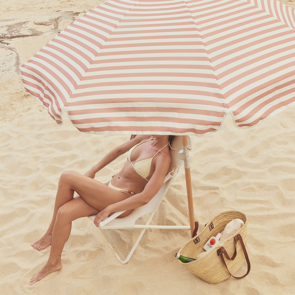 SUNNYLiFE paplūdimio skėtis nuo saulės – TIERRA CLAY STRIPE
