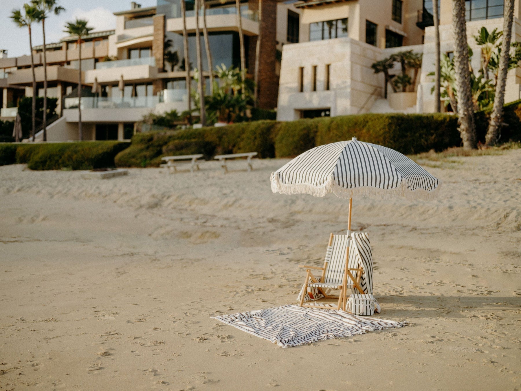 Business & Pleasure paplūdimio ir pikniko pledas – MONACO BLACK STRIPE